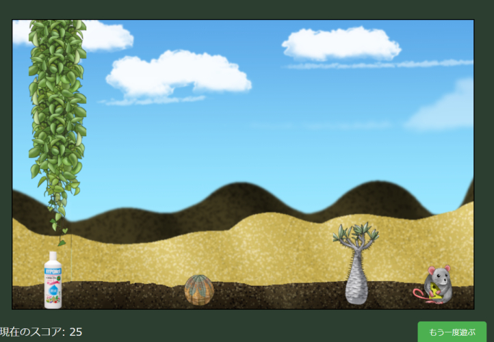 なので、植物に当たらないようにジャンプして、植物を枯らさないようにしましょう。(ゴールはありません)